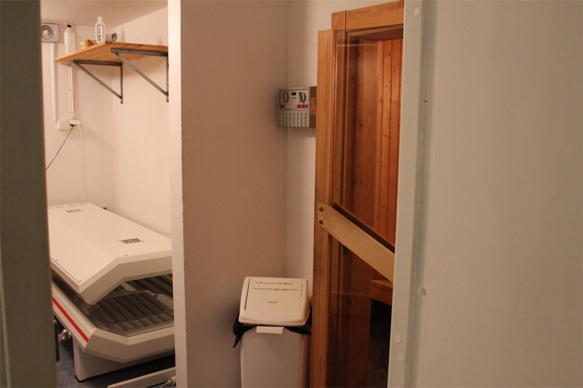 Solariet är numera borttaget. Planer finns för ett enklare GYM i källaren.